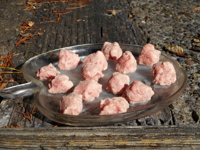 Ingredients (organic)Any muscle meat and organ meat including bones. That's it. Optional additives (about 10-20%): Fruit. Veggies. Nuts. Seeds. Supplements (be careful when it comes to supplements for dogs). Preparing Your Dog's Food or TreatGrind meat and bones. Your grinder won't handle bones? Don't include them (for now). Puree fruit or veggies. Grind nuts and seeds (I use a coffee grinder). Mix ingredients with supplements or other healthy “additives.” Form into meatballs and freeze. Serving Your Homemade Dog TreatsOne at a time or pile 'em up for a whole meal. If they seem kind of big, just chop into smaller pieces. Also use for a dog training treat! Storing Your Dog's Tasty Dog Treat TreasuresFreeze. I like to vacuum-seal in jars but my dog usually goes through them before they'll have a chance to freezer-burn! The Perfect Homemade Nutritious Doggy Treat!I've found that there's times my dog isn't really crazy for the food I've prepared for the week. No problem... grind it up into meatballs and freeze. Something about the process... she'll eat them! These easy homemade dog treats have no downside... feeding them to your companion assures that he'll live a long, happy disease-free (and vet-free) life!